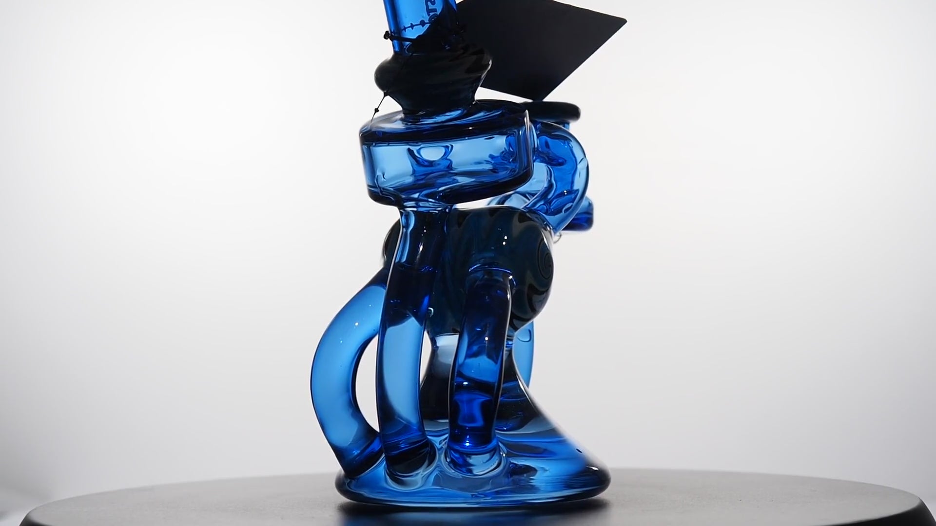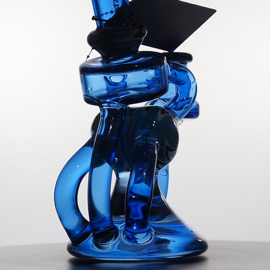 An impressive 6.8" recycler made with high quality American glass. With a series of interconnected chambers, this piece will produce clean, flavourful hits every time. Combing transparent coloured glass with unique wigwag patterns, these pieces are as visually stunning as they are functional.