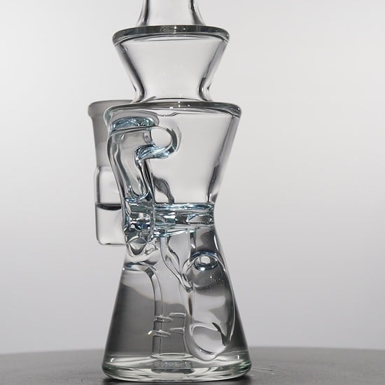 Made with crystal clear glass, this piece is designed to allow you to fully capture the flow of each hit. With multiple interconnected chambers, it filters and purifies for a clean hit every time. Standing at just 6" tall, this piece is perfect for home use or a quick hit on the go.