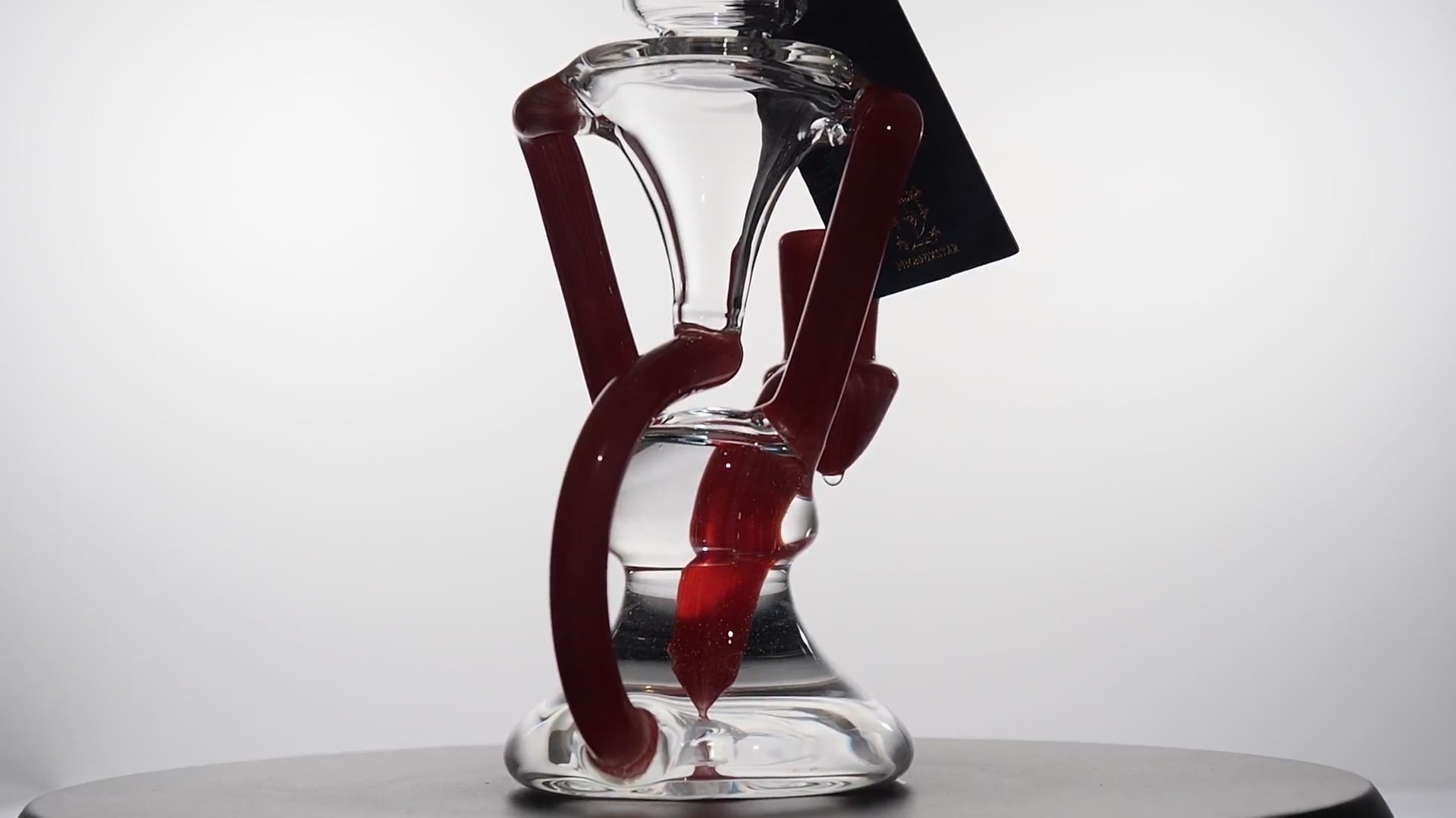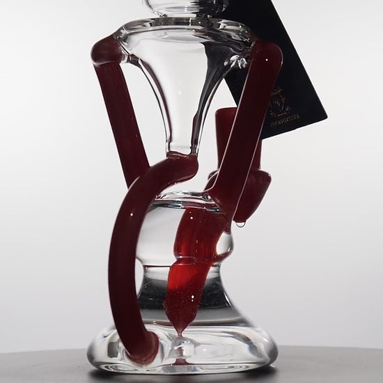 This rig features a clear scientific body wrapped with bold red linework that snakes through the base and up into the neck for a striking, modern look. The bent neck with red-and-white wigwag detail keeps splashback down while adding a pop of heady style that stands out in any collection.