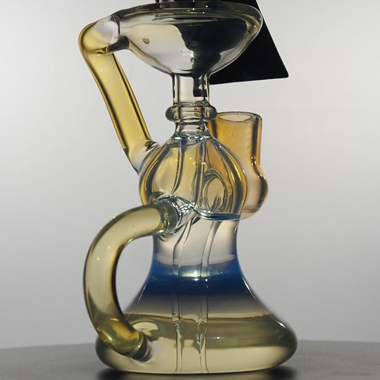 This 8inch Silver Fumed Recycler Rig has been specifically engineered to produce continuous water and vapour movement through a series of interconnected chambers. The result - reduced splash back and advanced cooling and purification, giving you a pure, clean and gentle draw every time which truly highlights the intricate terpene profiles of your materials. The silver fuming reacts to light, creating a mesmerising, ever-changing visual effect.