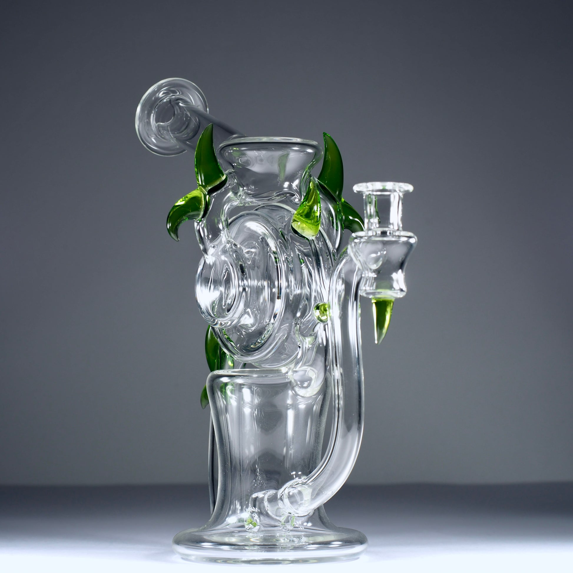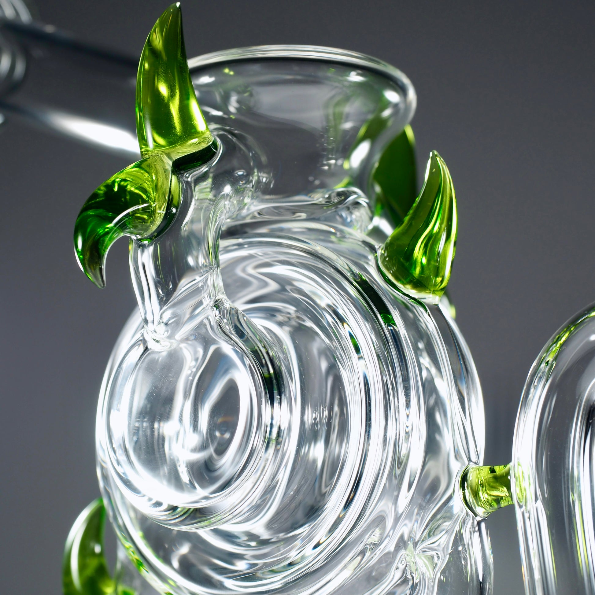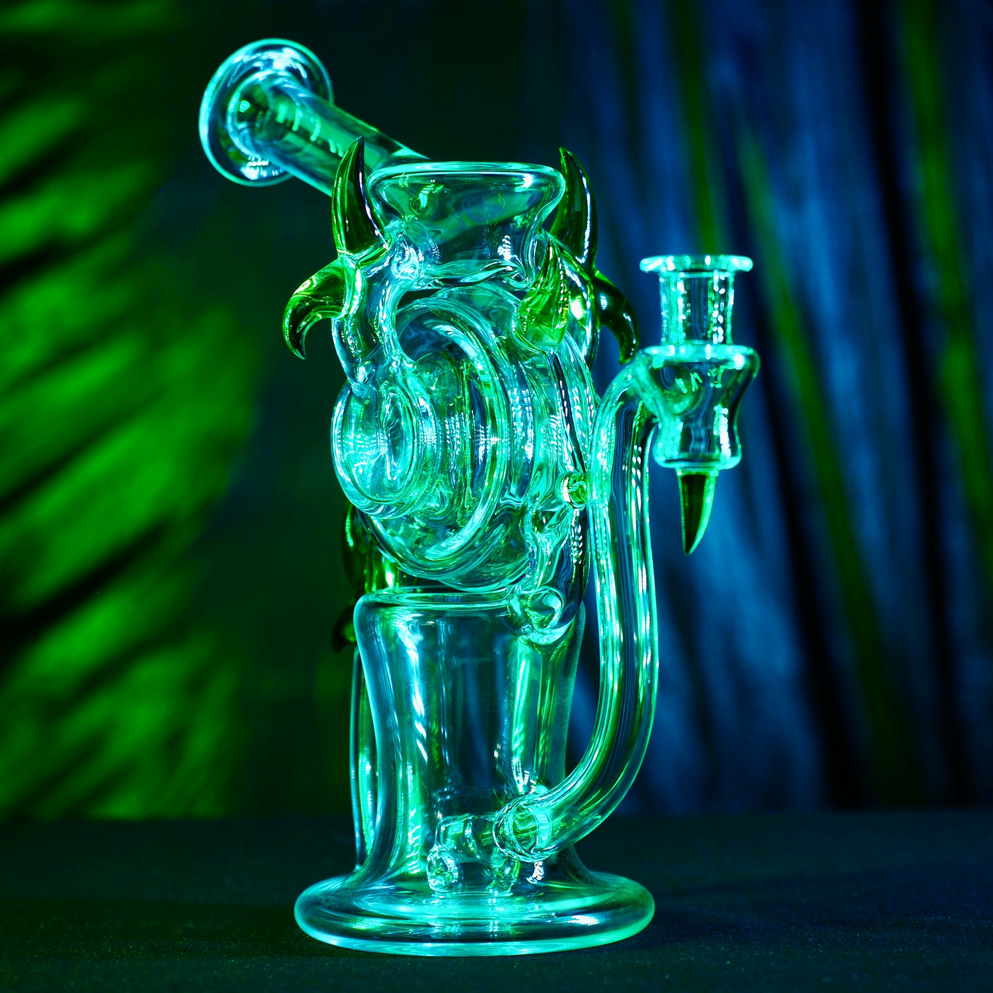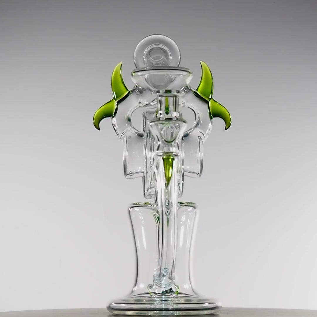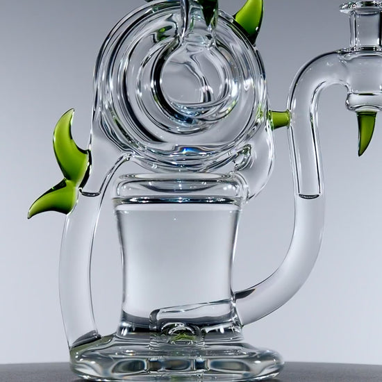 This Dohn Joe spool cycler is a dialled-in 20.5 cm weapon, packing serious function into a sleek, compact frame, finished with clean green horn accents that scream high-end without ever trying too hard. The 10 mm format keeps everything tight and intentional, locking in a laser-focused vapour path and giving you a rig that feels engineered, not oversized.