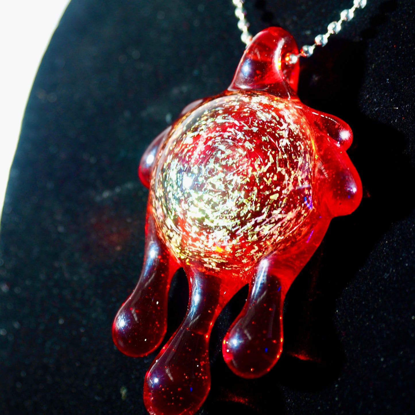 Devilishly Dazzling. The "Red Devil Sparkle Drip" captures attention with its intense red color, amplified by a striking sparkle. The dynamic drip form adds a touch of edgy artistry to this captivating piece.
