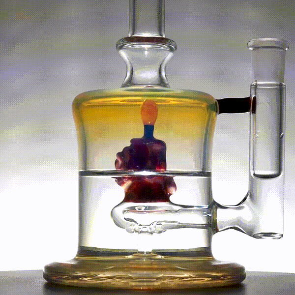 Unleash the beast with the Candle Monster Fumed Rig! This unique piece is a showstopper, featuring a stunning fumed finish and a 4-hole perc for buttery-smooth filtration. The real star of the show? The candle monster perched proudly on top of the perc, adding a quirky and fiery touch to your setup.