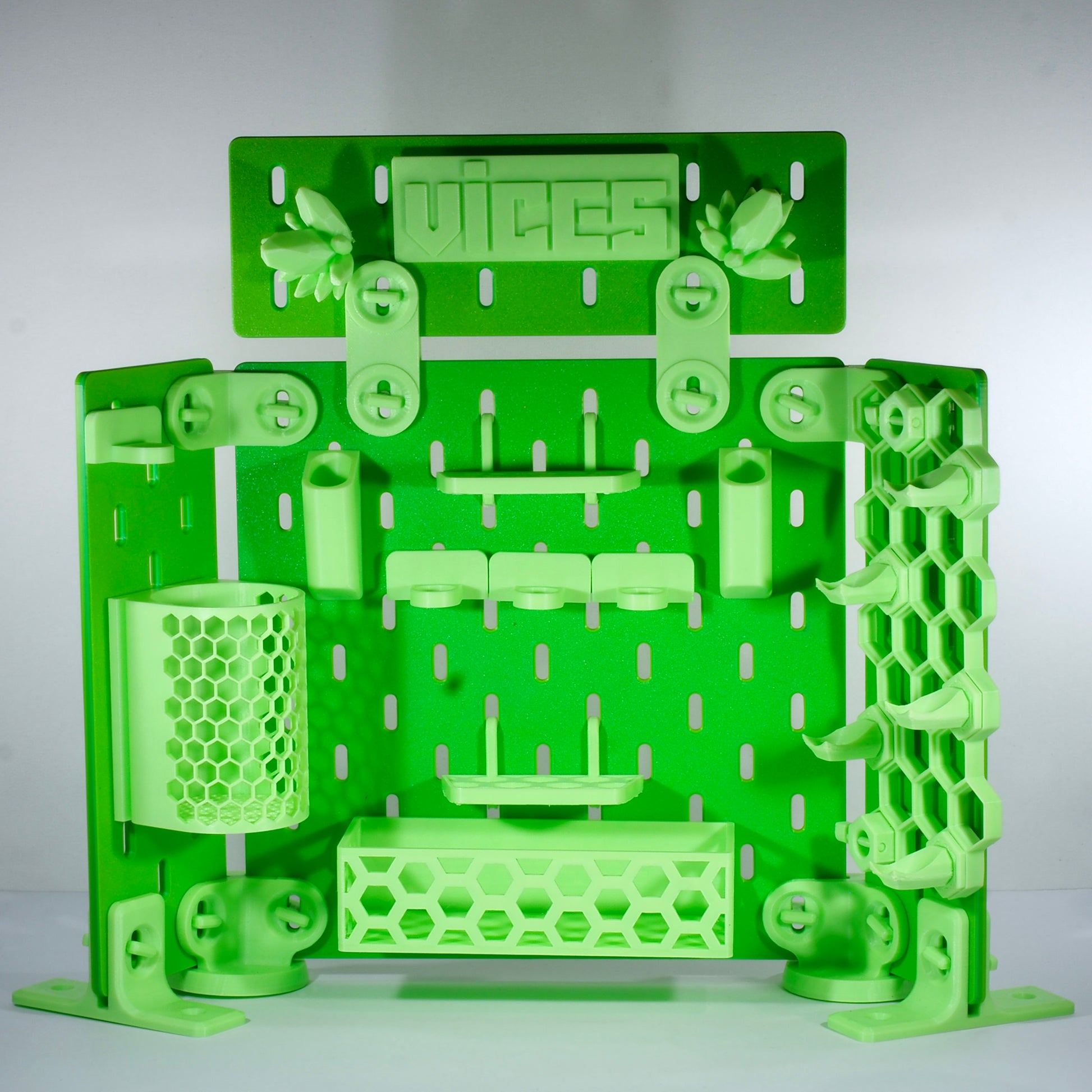 Your new command centre for all the little pieces that run your sesh. Straight from the mind of Beedles, this 3D‑printed wall/desk unit is a first of its kind, combining function and style to give your Battlestation a fresh look. With multiple shelves, compartments and stands, the AdaptaWall lets you load up bangers, marbles, rosin jars and more, all in one clean, flex‑worthy display.